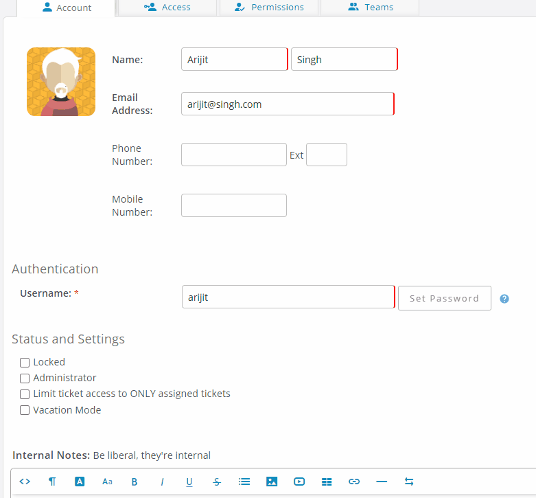 Whereas in vanilla osTicket you can add the Department and specify the Role in one step.