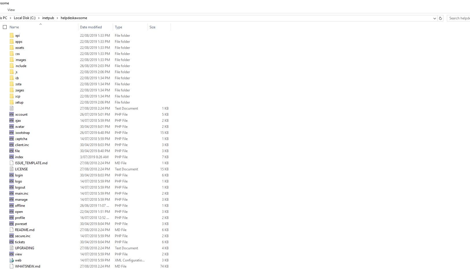 Yes it was ok. However, i have re-extract, compare the structure and paste it helpdeskawsome/, restart the IIS and its same. “Blank blue screen”