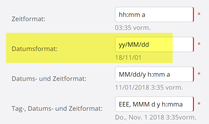 But the demo is obviously using a different date format. Perhaps you should consider changing yours. Here is what the demo uses: