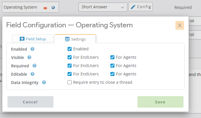 My new field automatically picked up the “required” styling in the Client > New Ticket form…