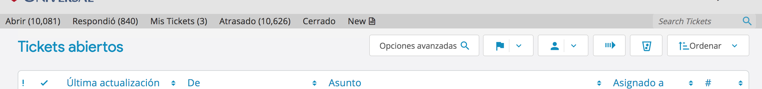 Apparently I managed to resolve the situation, I do not know how or why but when I passed the complete link in the browser “https://solicitud.universal.org.mx/scp/tickets.php?status=answered” the page rendered with the answered tab, and right now is ok.