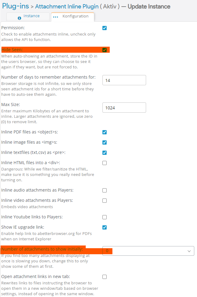 Neither of the settings “Hide Seen” or “Number of attachments to show initially: 0” actually disable the auto-showing of attachments.